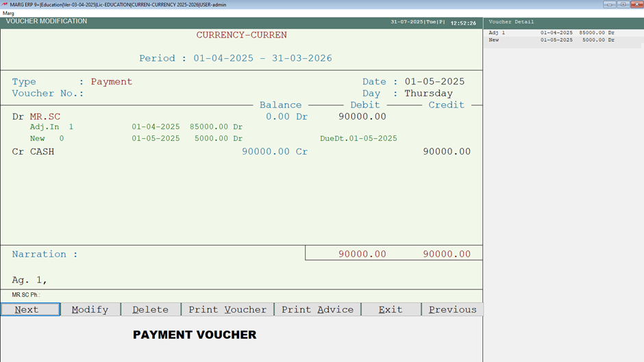 Ledger A/c Click > Mr. SC A/c Select करें |