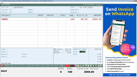 अब user ₹ 2000.00 तक के Bill Value को देख सकता है, सॉफ्टवेयर 5% छूट जारी करेगा