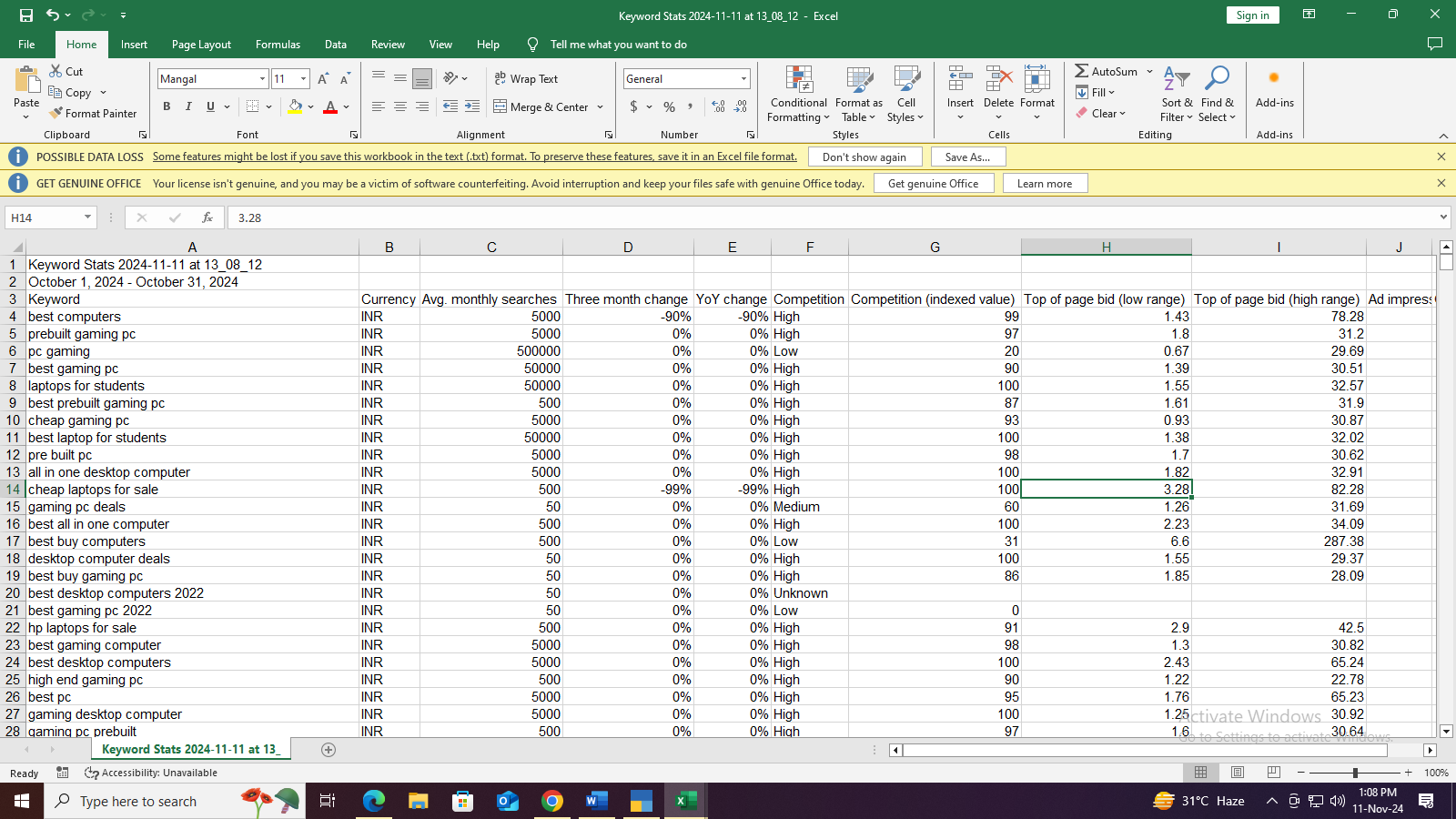 Google keywords Planner
