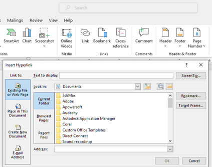 किसी Text को दूसरी Word ,Excel या Power Point की File और कोई Picture से Link करने के लिए Use करते हैं