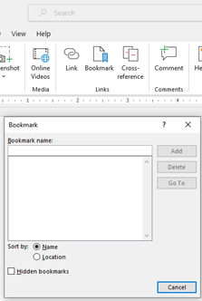 Insert menu < Bookmark <Bookmark का नाम Select करके GoTo पर Click करेंगे <Close