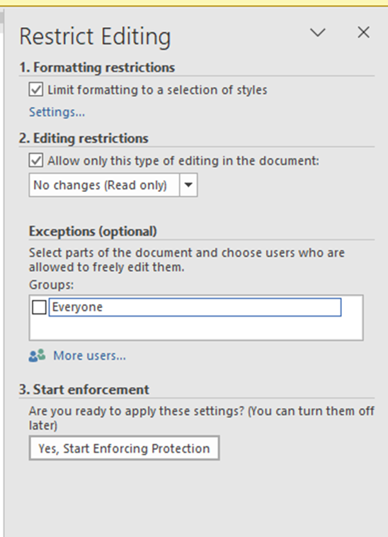yes, Start enforcing protection <Enter Password 2 times <OK