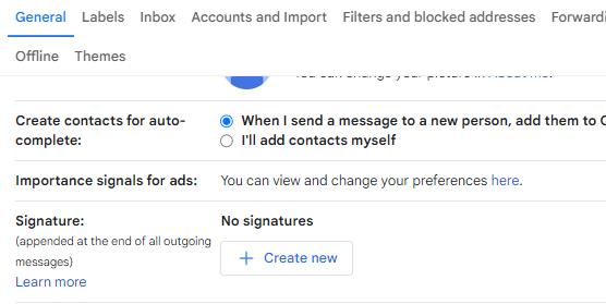 Scroll करके नीचे Signature Options पर जाए क्रिएट न्यू पर क्लिक करें