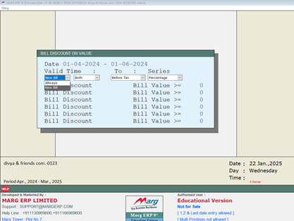 b. Always: इस ऑप्शन में, बिल डिस्काउंट पुराने bill पर भी काम करेगा, लेकिन इसके लिए पुराने bill को दुबारा से save करना पड़ेगा।