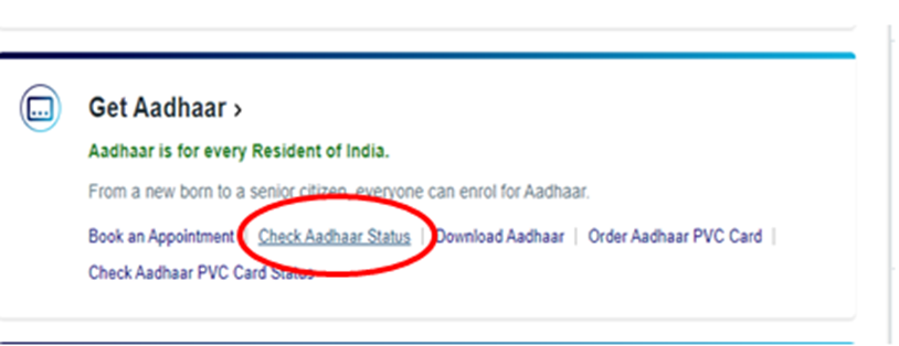 Step 5 : Check Aadhar Status option पर क्लिक करें।