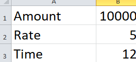 Simple interest = product (B1:B3 ) /100