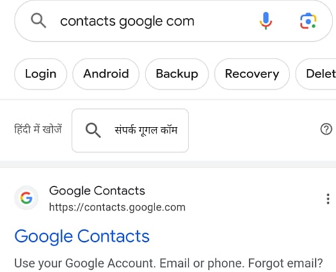संपर्क: " Contacts Google.com " पर क्लिक करें जिससे कि आप अपने संपर्क पेज पर पहुंच सकें।