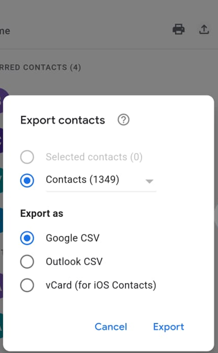 जीमेल से संपर्क एक्सपोर्ट करने की विधि: