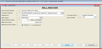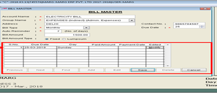 उपयोगकर्ता बिल मास्टर विंडो में आवश्यकतानुसार संपादन या संशोधन भी कर सकता है ।
