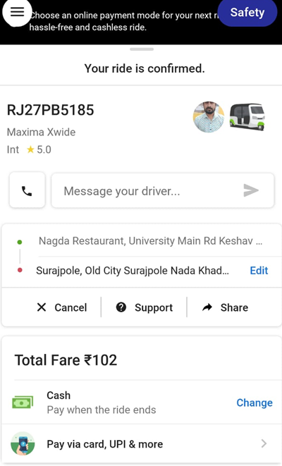 यात्रा समाप्त होने पर, आपको पेमेंट की पुष्टि करनी होगी और आपको रेटिंग देनी होगी।