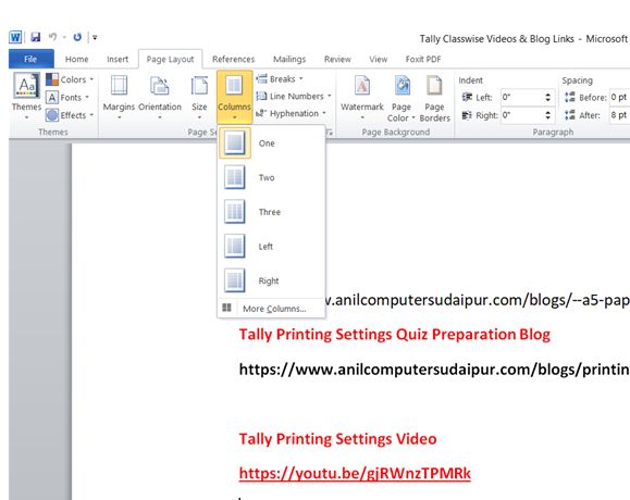 अब Page Setup ग्रुप में column Option पर Click करें। Click करते ही एक Drop Down Menu Open होगा।