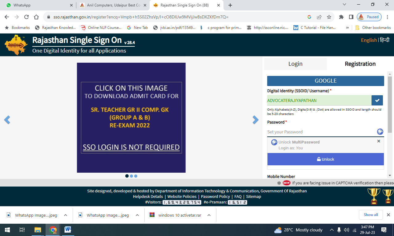 यदि हम सरकारी सेवाओ का लाभ लेना चाहते है तो हमें SSO में Login करना होगा। इसके लिए हमे https://sso.rajasthan.gov.in पर Registration करना होगा।