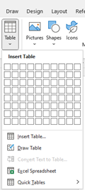 Tables- इस ऑप्शन से डॉक्यूमेंट में टेबल बना सकते हैं