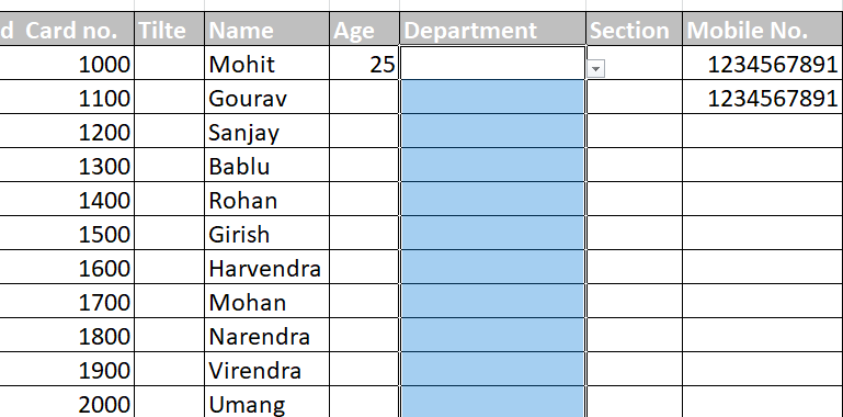 ( जो भी list हम बनाना चाहते हैं जैसे हम title को,section no को या Department कि list बनाना चाहते हैं तो उसे हमें sheet में एक बार type कर लेना है और sourse मैं उसे select करना है ताकि हमें वह बार-बार लिखना नहीं पड़े )