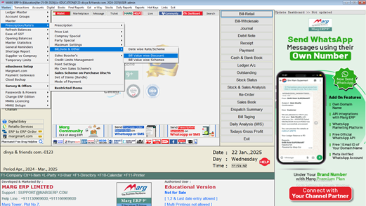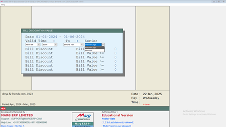 Bill Discount पर सबसे पहले date का रेंज मेंशन करें, यानी किस तारीख से लेकर किस तारीख तक का bill discount customer को दिया जाना है। इसके बाद New Bill या Always Option को जरूरत के अनुसार select करें।