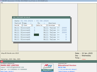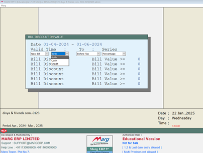 b. Always: इस ऑप्शन में, बिल डिस्काउंट पुराने bill पर भी काम करेगा, लेकिन इसके लिए पुराने bill को दुबारा से save करना पड़ेगा।