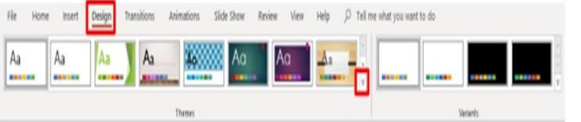 डिजाइन टेप सेलेक्ट करें एवं थीम ग्रुप को सेलेक्ट करें