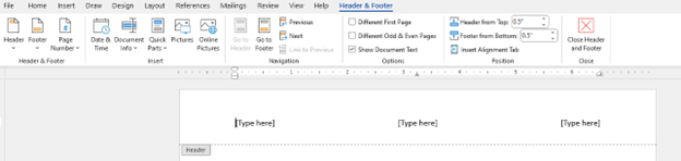 Header व Footer मैं हम जो भी चीज लिखते हैं वह Document के हर Page पर दिखाई देता है