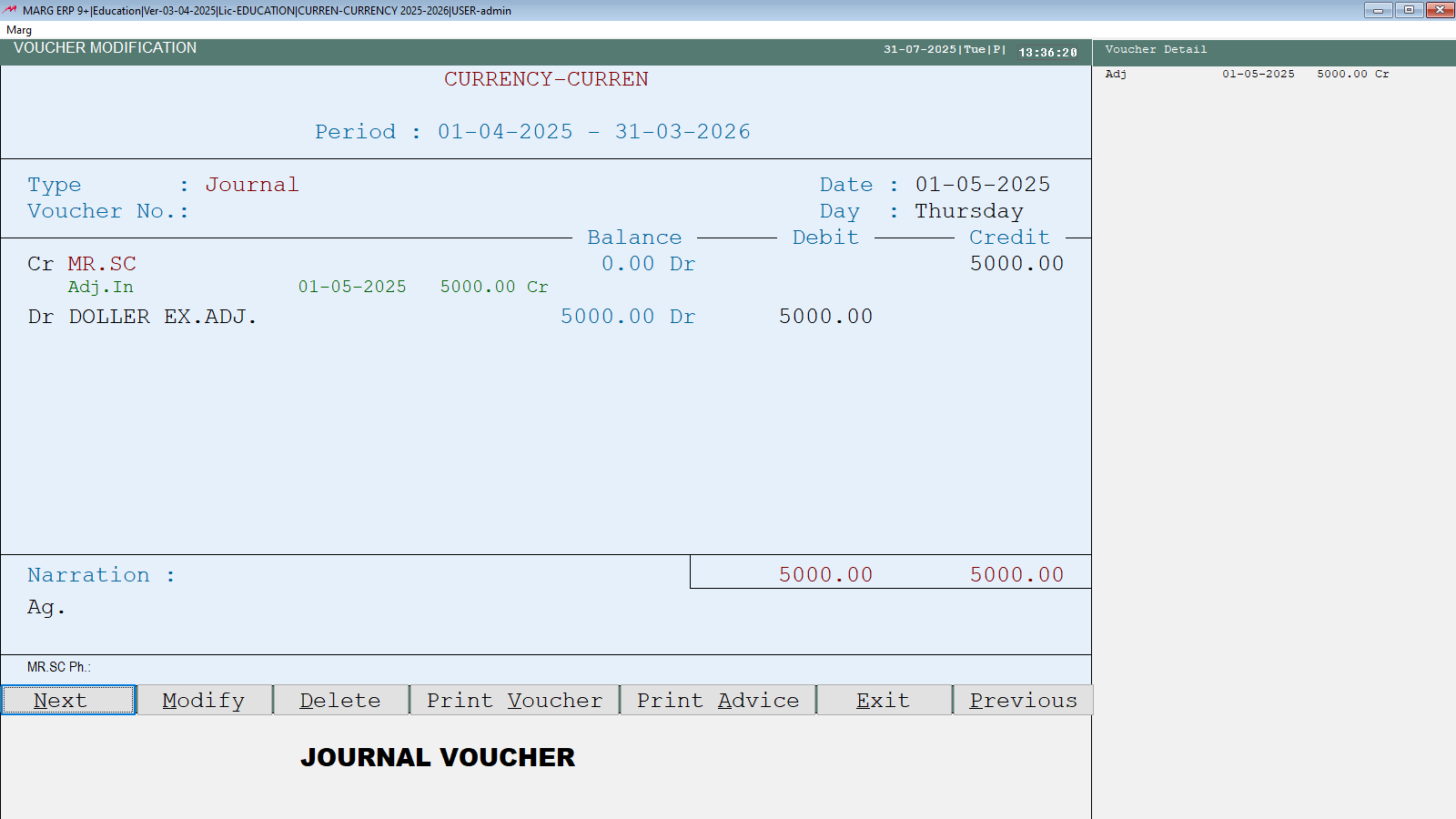 एक Voucher open होगा | Journal Voucher > Enter> Enter > ESC Save हो जाएगा |