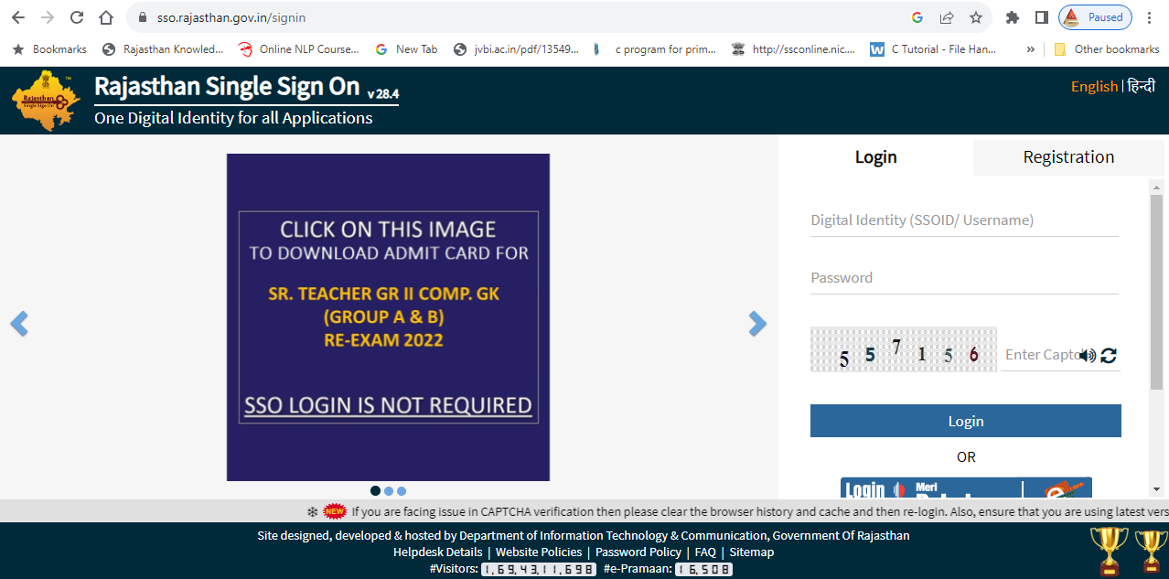 यदि हम सरकारी सेवाओ का लाभ लेना चाहते है तो हमें SSO में Login करना होगा। इसके लिए हमे https://sso.rajasthan.gov.in पर Registration करना होगा।